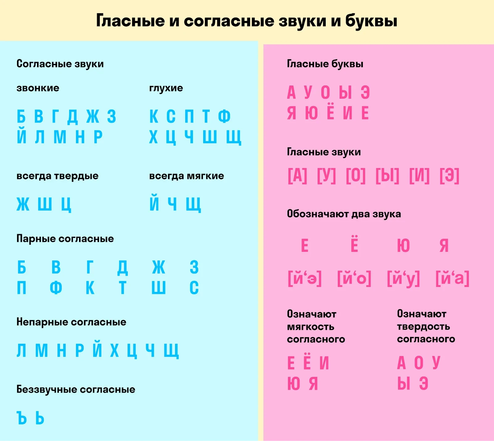 С согласными немного сложнее: у них есть различие на звонкие (с участием тона — звука) и глухие (только с шумом).