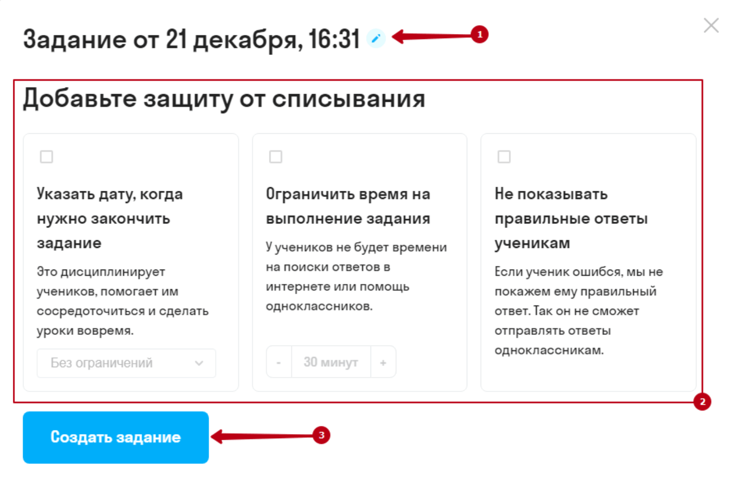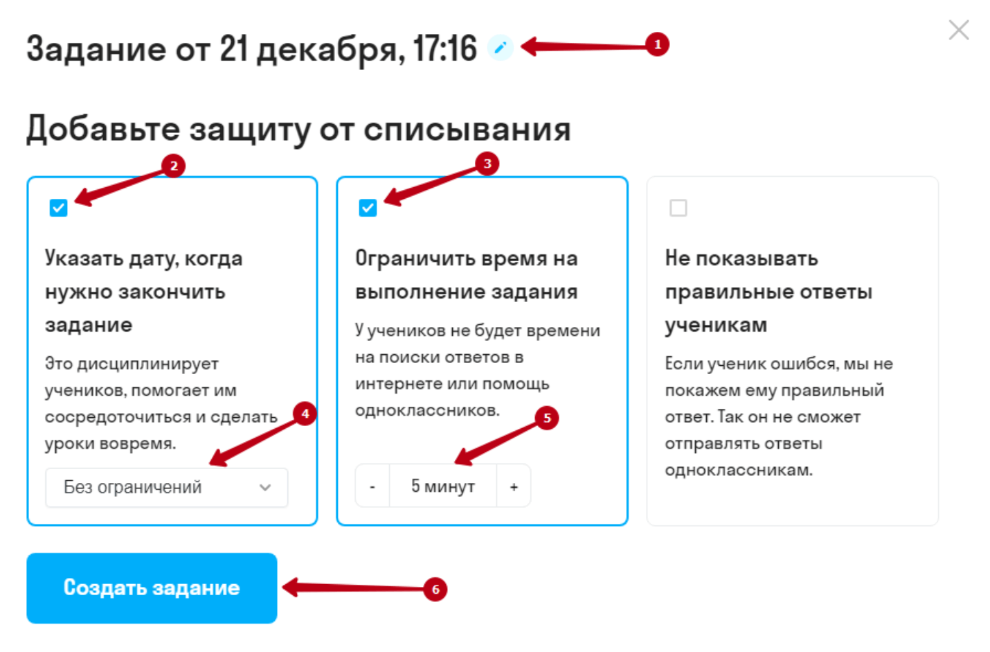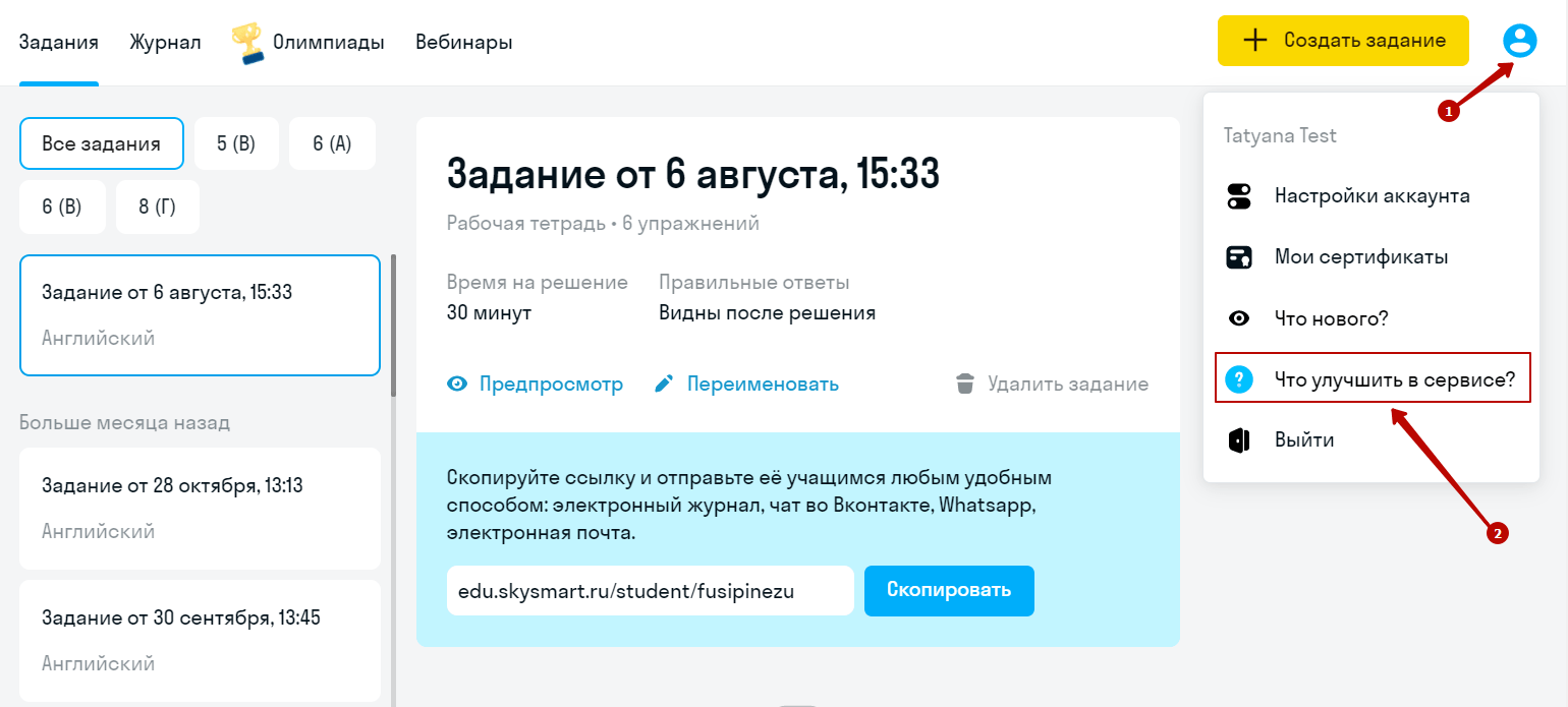 6. Система сгенерировала ссылку для учеников. Скопируйте ссылку на задание и отправьте классу любым удобным для вас способом.